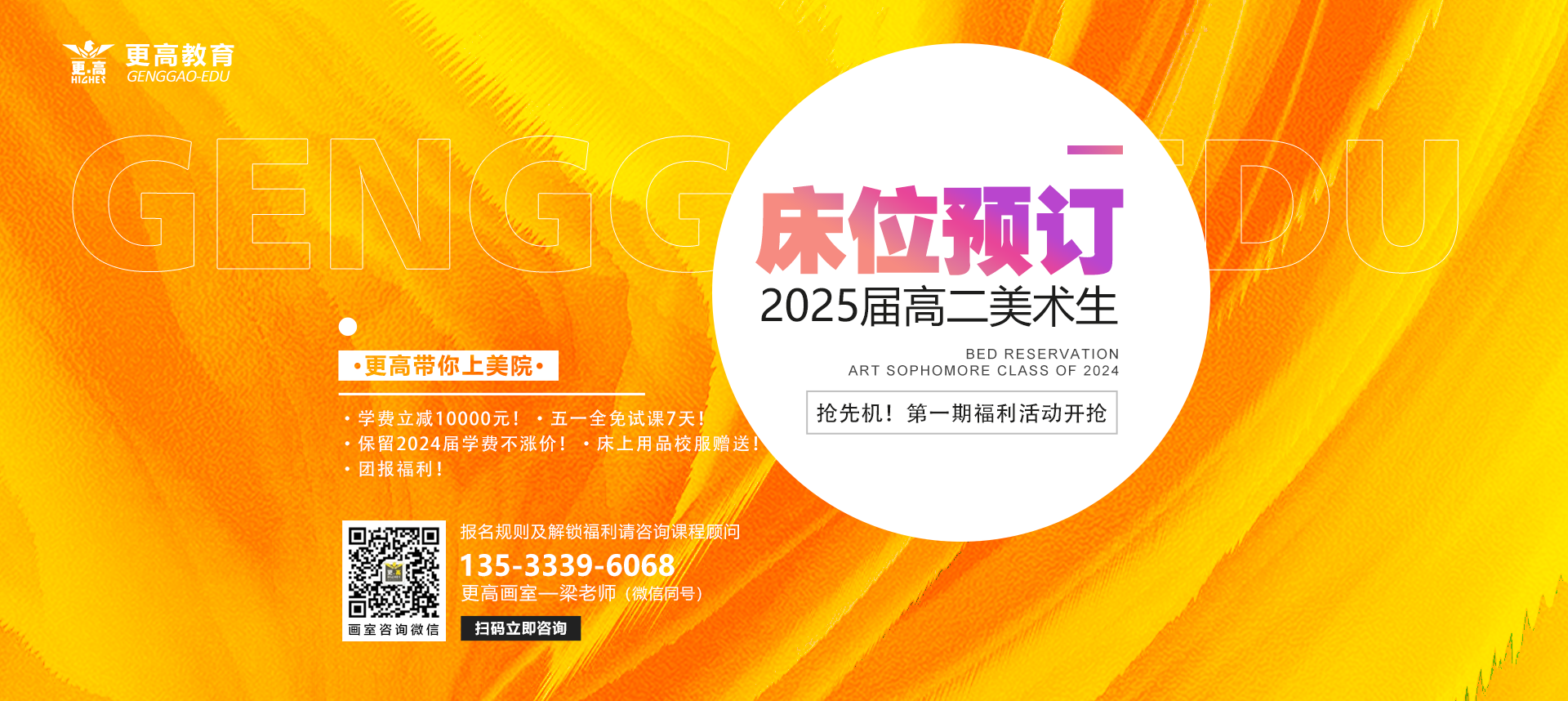 更高畫室2009年創辦,坐落于廣州海珠區瀛洲北路54號,鄰靠廣州大學城、國際生物島。占地面積有一萬多平方米,學校環境優美、設備齊全、師資雄厚、成績突出,實行封閉式管理,360度無死角監控的美術培訓中心,校區內設有食堂、超市、籃球場、學生閱覽區、休息區、后花園等配套設施。酒店式豪華公寓宿舍,全新配套教學設施設備,為教師和學生提供良好的教學和生活環境,是一家專門專注美術高考的培訓機構,堅持教學管理責任到人、采用分班管理、分組輔導、定向培養、專業課+文化課兩手抓的教學模式保證各科教學成果。